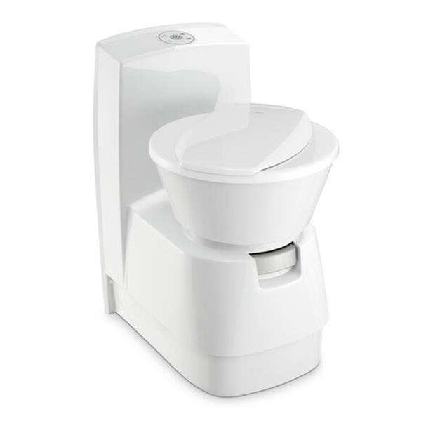 Dit cassettetoilet met krasbestendige keramische binnenpot en gintegreerde spoelwatertank van 7 liter is ontworpen voor de caravan of kampeerauto.