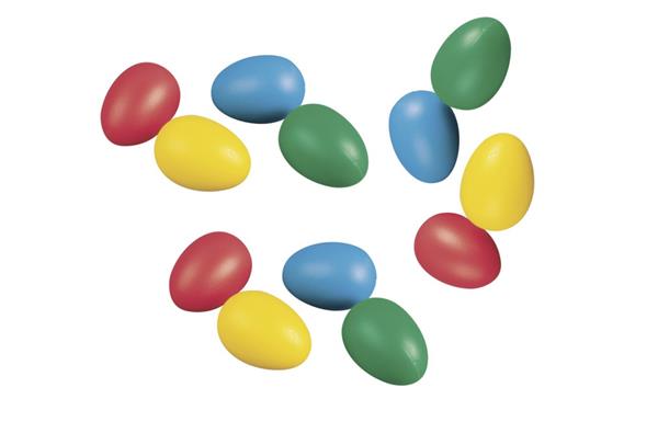 12 eieren (rood, geel, groen en blauw - PVC) (afm. diameter 4,5 cm)