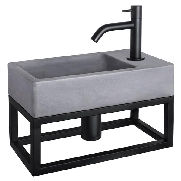 Specificaties Fonteinset Differnz Force Beton en Handoekrek 40x22x9 cm Donker Grijs Met Gebogen Kraan Mat Zwart: