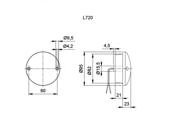 LED achterlicht serie 720 inbouw rond. Wordt geleverd met een 18cm kabel die eenvoudig aangesloten kan worden.